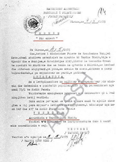 March 1945 – Arrested and held under house arrest at the home of Guljelm Luka, Shkoder.
