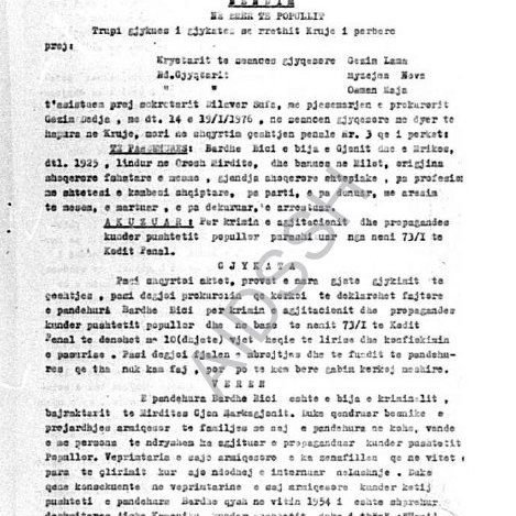 January 1976 – She is sentenced to 10 years imprisonment and sent to the Kosovo-Belsh prison in Elbasan