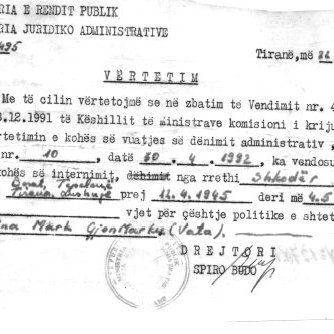 May 1949 – She is transferred to the concentration camp in Tepelene.