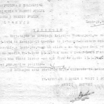 May 1954– She is transferred to the labor camp in Saver, Lushnje.