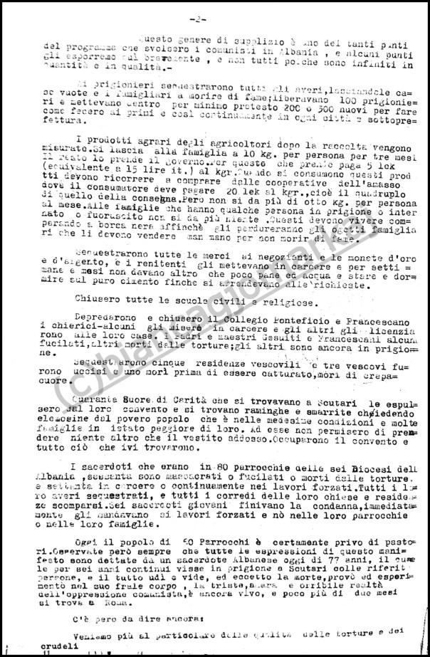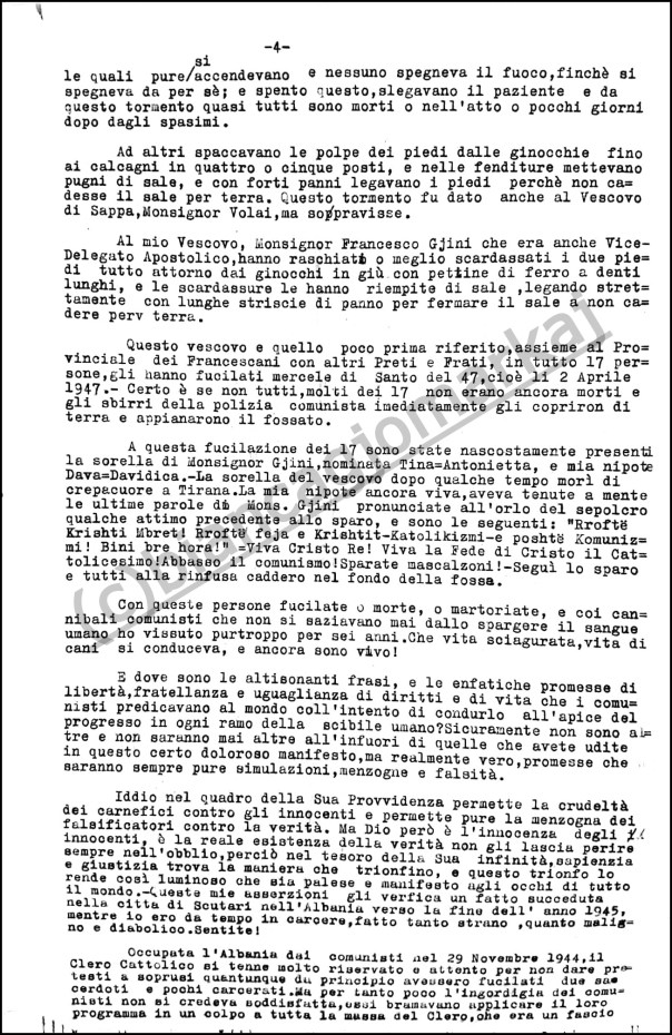 The writing below is his personal memoir of the years he spent in prison in Shkoder, 1947-1953. It is a telling account of the facts as experienced and witnessed by him during the brutal takeover of communism. The original was written by him in Italian. The English version was translated by Bianca Gjomarkaj. The document is part of the personal library of Ndue Gjon Gjomarkaj.