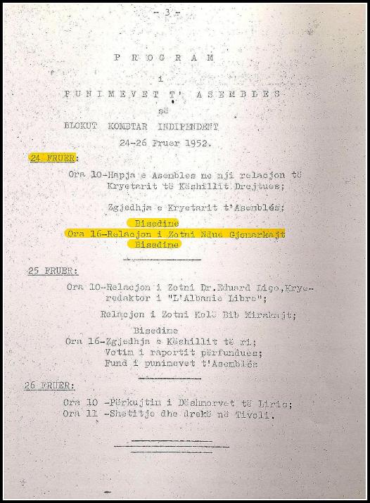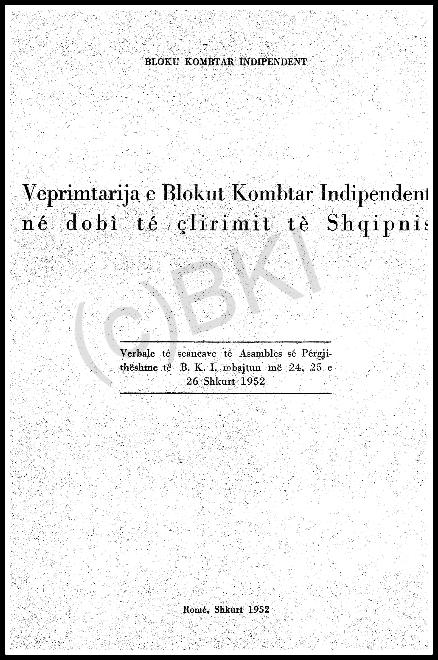 Verbale te seancave te Asambles se Pergjitheshme te B.K.I. mbajtun me 24, 25 e 26 Shkurt 1952 ne Rome.